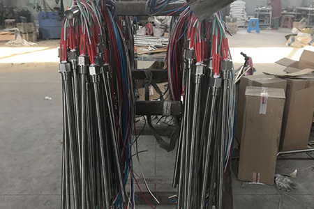 內(nèi)部填充物使電熱絲與空氣絕緣,居于中心位置不發(fā)生偏移而碰及管壁,這樣管體表面不帶電,該產(chǎn)品冷端可按客戶要求加工制造。